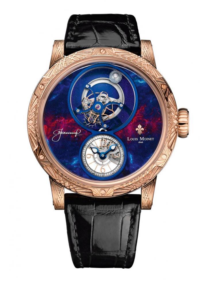 - Una evocación poética del esplendor del cosmos, el Spacewalker está dedicado a Alexey Leonov quien, el 18 de marzo de 1965, se convirtió en el primer hombre en emprender una caminata espacial. “Me dirigía hacia lo desconocido; Nadie en el mundo podría decirme qué encontraría allí. [...] Lo que más me impactó fue el silencio: un silencio absoluto como el que nunca había presenciado en la Tierra [...]. El cielo estaba completamente oscuro, pero al mismo tiempo brillaba como el Sol... La Tierra era pequeña, de color azul claro, y terriblemente solitaria, nuestra casa, para ser defendida como una reliquia sagrada. La tierra era absolutamente redonda. Creo que nunca supe lo que significaba la palabra «redondo» hasta que vi la Tierra desde el espacio". El tourbillon retrata la nave espacial de Leonov; el cosmonauta está representado por un diamante que orbita el tourbillon, y la profundidad del cosmos por un fondo en aventurina en el que se pintó el cielo estrellado y una nebulosa (utilizando una técnica que es un secreto muy bien guardado). De 100.000 a 200.000 $